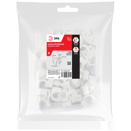 Скобы крепёжные пластиковые ЭРА предназначены для быстрого и надежного крепления круглых и плоских кабелей.