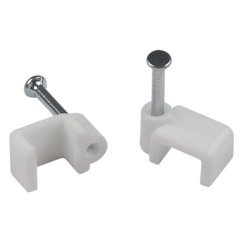 В ассортименте 2 типа изделий: для круглого кабеля и для плоского кабеля. Поставляется в комплекте с уже вставленным гвоздем.