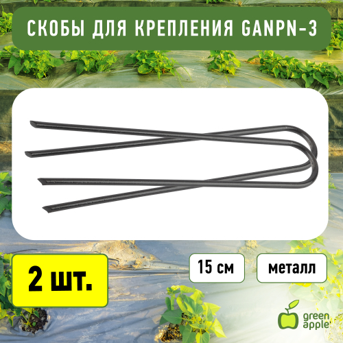 Скобы GANPN-3 предназначены для крепления сетки, пленки, укрывного материала. Высота скоб: 15 см. Металлические скобы предназначены для фиксации различных укрывных материалов: мембран, зимних укрытий, геотекстиля, пленочных материалов и пр. Обеспечивают надежность и качество крепления, применяются для различных по плотности и твердости грунтов. Изготовлены из качественного металла, обеспечивающего прочность и надежность крепления. С садовыми аксессуарами от компании GREEN APPLE работа в саду всегда в удовольствие!