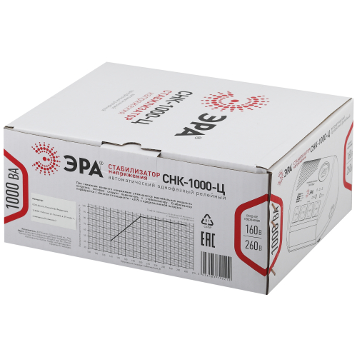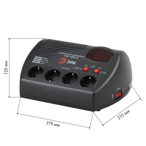 Стабилизатор напряжения компактный однофазный релейный цвет чёрный модели СНК-1000-Ц. Номинальные характеристики (полная мощность / диапазон входного напряжения): 1000ВА 160-260В . Предназначен для поддержания стабильного однофазного напряжения питания бытовых приборов при отклонениях значений сетевого напряжения. Выбирая стабилизатор, нужно знать, какое электрооборудование будет к нему подключено: один прибор, группу приборов (наиболее чувствительных к перепадам напряжения в сети) либо вся домашняя (офисная) техника. Затем необходимо рассчитать суммарную мощность защищаемых электропотребителей. Основное условие выбора мощности стабилизатора напряжения - суммарная мощность подключаемой к нему нагрузки не должна превышать полной мощности самого стабилизатора (в противном случае автоматика стабилизатора будет их просто отключать). Точные значения мощности можно узнать из паспортных данных Вашего конкретного потребителя. Стабилизатор подбирается с запасом в 25-30% к его полной мощности.
