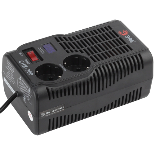 Стабилизатор напряжения компактный однофазный релейный цвет чёрный модели СНК-300. Номинальные характеристики (полная мощность / диапазон входного напряжения): 300ВА 160-260В . Предназначен для поддержания стабильного однофазного напряжения питания бытовых приборов при отклонениях значений сетевого напряжения. Выбирая стабилизатор, нужно знать, какое электрооборудование будет к нему подключено: один прибор, группу приборов (наиболее чувствительных к перепадам напряжения в сети) либо вся домашняя (офисная) техника. Затем необходимо рассчитать суммарную мощность защищаемых электропотребителей. Основное условие выбора мощности стабилизатора напряжения - суммарная мощность подключаемой к нему нагрузки не должна превышать полной мощности самого стабилизатора (в противном случае автоматика стабилизатора будет их просто отключать). Точные значения мощности можно узнать из паспортных данных Вашего конкретного потребителя. Стабилизатор подбирается с запасом в 25-30% к его полной мощности.
