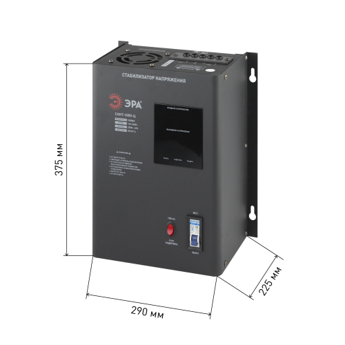 Стабилизатор напряжения настенный однофазный релейный цвет чёрный модели СННТ-5000-Ц. Номинальные характеристики (полная мощность / диапазон входного напряжения): 5000ВА 140-260В . Предназначен для поддержания стабильного однофазного напряжения питания бытовых приборов при отклонениях значений сетевого напряжения. Выбирая стабилизатор, нужно знать, какое электрооборудование будет к нему подключено: один прибор, группу приборов (наиболее чувствительных к перепадам напряжения в сети) либо вся домашняя (офисная) техника. Затем необходимо рассчитать суммарную мощность защищаемых электропотребителей. Основное условие выбора мощности стабилизатора напряжения - суммарная мощность подключаемой к нему нагрузки не должна превышать полной мощности самого стабилизатора (в противном случае автоматика стабилизатора будет их просто отключать). Точные значения мощности можно узнать из паспортных данных Вашего конкретного потребителя. Стабилизатор подбирается с запасом в 25-30% к его полной мощности.