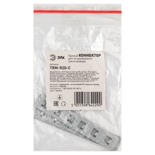 Коннектор представляет из себя 2 пластины, которые устанавливаются в пазы шинопровода и обеспечивают стабильную фиксацию за счет металлических упоров на пластине. Коннектор применяется с шинопроводами серии TRM-R20 и TRM-PC20