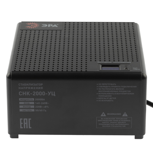 Стабилизатор напряжения компактный однофазный релейный цвет чёрный модели CНК-2000-УЦ. Номинальные характеристики (полная мощность / диапазон входного напряжения): 2000ВА 140-260В . Предназначен для поддержания стабильного однофазного напряжения питания бытовых приборов при отклонениях значений сетевого напряжения. Выбирая стабилизатор, нужно знать, какое электрооборудование будет к нему подключено: один прибор, группу приборов (наиболее чувствительных к перепадам напряжения в сети) либо вся домашняя (офисная) техника. Затем необходимо рассчитать суммарную мощность защищаемых электропотребителей. Основное условие выбора мощности стабилизатора напряжения - суммарная мощность подключаемой к нему нагрузки не должна превышать полной мощности самого стабилизатора (в противном случае автоматика стабилизатора будет их просто отключать). Точные значения мощности можно узнать из паспортных данных Вашего конкретного потребителя. Стабилизатор подбирается с запасом в 25-30% к его полной мощности.