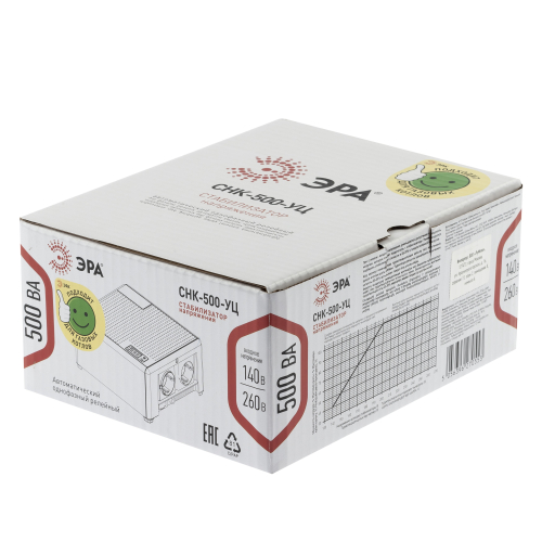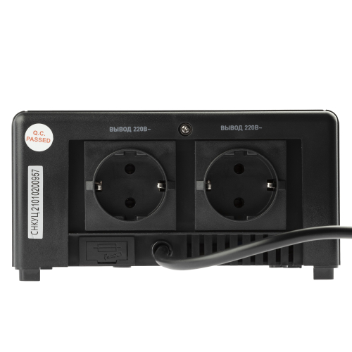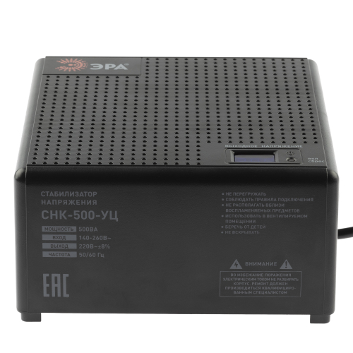 Стабилизатор напряжения компактный однофазный релейный цвет чёрный модели CНК-500-УЦ. Номинальные характеристики (полная мощность / диапазон входного напряжения): 500ВА 140-260В . Предназначен для поддержания стабильного однофазного напряжения питания бытовых приборов при отклонениях значений сетевого напряжения. Выбирая стабилизатор, нужно знать, какое электрооборудование будет к нему подключено: один прибор, группу приборов (наиболее чувствительных к перепадам напряжения в сети) либо вся домашняя (офисная) техника. Затем необходимо рассчитать суммарную мощность защищаемых электропотребителей. Основное условие выбора мощности стабилизатора напряжения - суммарная мощность подключаемой к нему нагрузки не должна превышать полной мощности самого стабилизатора (в противном случае автоматика стабилизатора будет их просто отключать). Точные значения мощности можно узнать из паспортных данных Вашего конкретного потребителя. Стабилизатор подбирается с запасом в 25-30% к его полной мощности.