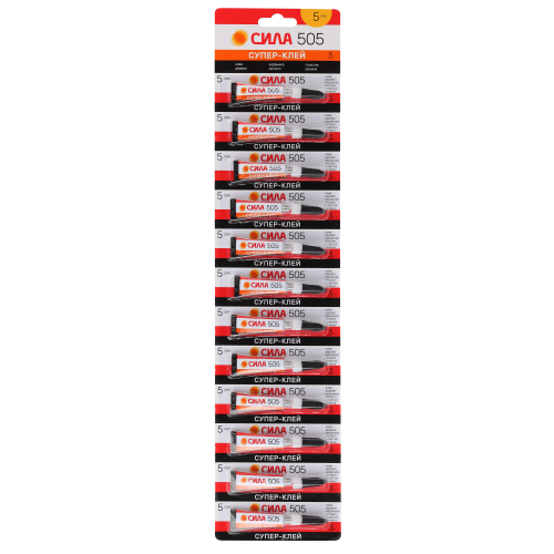 Популярный супер-клей СИЛА 505 на ленте, объединяющей 12 тюбиков по 3 гр. Индивидуальная упаковка каждого тюбика представляет собой отрывной от общей ленты блистер. Супер-клей СИЛА 505 – проверенный клей с отличными свойствами. Обладая высокой концентрацией цианакрилата и хорошей текучестью, он особенно эффективен для склеивания металлических деталей. Успешно применяется для пластика, дерева, кожи, резины, керамики, фарфора. Экономично расходуется и застывает за 5 секунд. Высококачественный супер-клей по доступной цене.