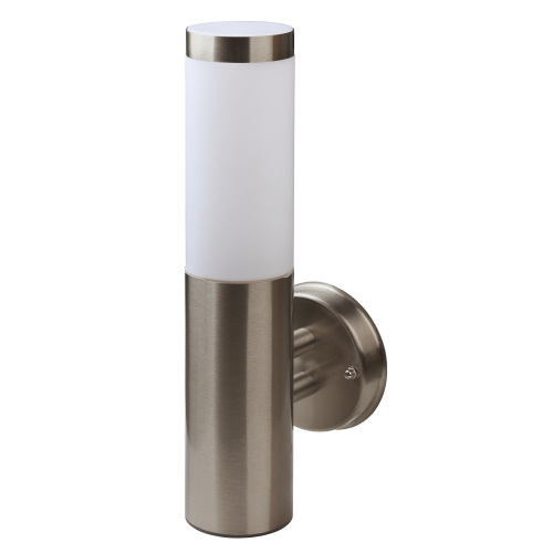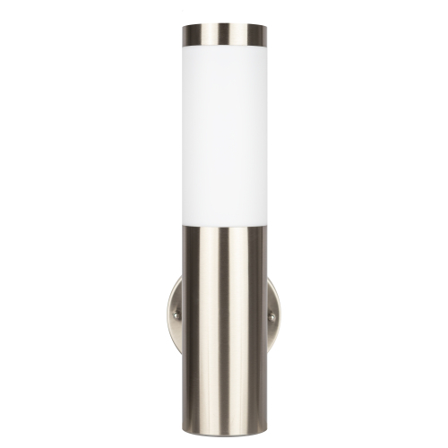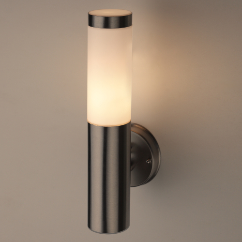 Светильник декоративный настенный WL17 создает интересные световые композиции, подчеркивает структуру материалов. Подходит для наружного уличного освещения и влажных помещений. Цоколь для источника света E27, напряжение питания 220В ~50/60Гц, материал нержавеющая сталь + пластик, цвет светильника хром/белый, размер 150*360*118 мм, D76 мм, максимальная мощность лампы 50 Вт, степень защиты IP44