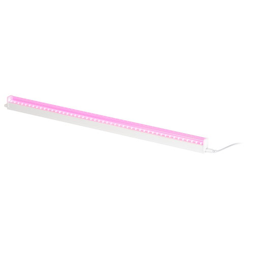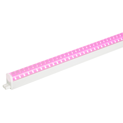 Мощный линейный светильник в компактном корпусе, светло розовое свечение.
