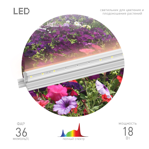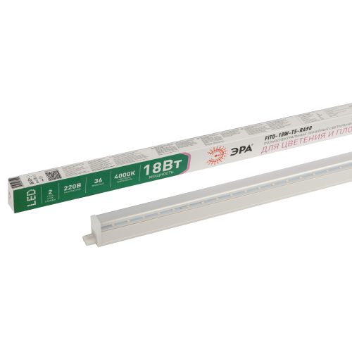 Светодиодный светильник ЭРА FITO-18W-Т5-Ra90 мощностью18 Вт- отличный вариант для растений на всем протяжении их развития. Светильник не слепит ярко-фиолетовыми оттенками, его свечение приятно для глаз. В то же время спектр оптимален для роста и развития растений вне зависимости от сорта и культуры. Растения выращенные под данным светильником имеют выраженный, характерный для них аромат и вкус. Находясь под данной фитолампой, ваши зеленые друзья научатся с легкостью переживать пересадку и пикировку. Площадь эффективного излучения составляет 2 м2. Для владельцев крупных хозяйств есть огромный плюс: до 8 светодиодных светильников легко соединяются в одну линию без дополнительных креплений. Корпус выполнен из прочного пластика, он не нагревается, неприхотлив в уходе. При возникновении горения лампа автоматически затухает.