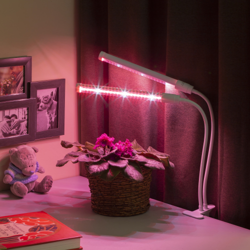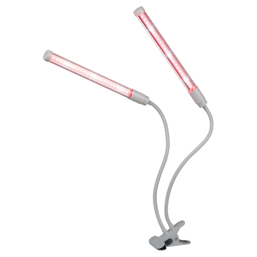 Универсальный светильник на прищепке полного спектра, но с красным отсветом. Подойдет для любого растения, так как в спектре излучения присутствуют все длины волн. Основной упор в излучении сделан на поддержание оптимального фотосинтеза и набор массы растением. Светильник имеет легко регулирующееся основание, два независимых по работе гнущегося плафона. Белый цвет корпуса легко вписывается в любой интерьер. Крепление как к подоконнику, так и к любой столешнице.