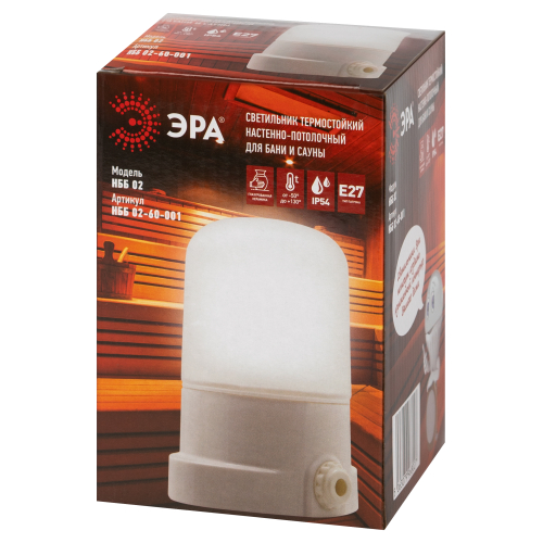 Термостойкий керамический светильник ЭРА серии НББ-02 разработан специально для использования в банях, саунах, бассейнах и других помещениях, где важно сочетание надёжности, безопасности, влаго- и термозащиты.