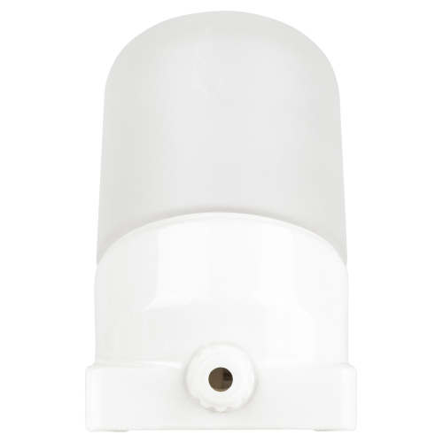 Наклонный термостойкий керамический светильник ЭРА НББ-02 для бань, саун, бассейнов. Пожаробезопасный: корпус и патрон изготовлены из керамики, рассеиватель — из закалённого опалового стекла. Эти материалы не только выдерживают температуру до +130°С, но и не поддерживают горение. Влагозащищённый: IP54 — может применяться во влажных помещениях, защищён от брызг.