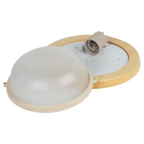 Светильник с элементами дерева серии "Кантри". Оригинальная линейка в стиле Кантри, в изготовлении которой используются элементы натурального дерева. Более практичные модели дополнены защитной деревянной решеткой. Изделия предназначены для освещения внутренних помещений и открытых площадей административно-бытовых, производственных помещений и мест общественного пользования. Диапазон рабочих температур от +1°С до +130°С. Материал рассеивателя селикатное стекло. Материал корпуса сталь, дерево. Источник света лампа с цоколем Е27. Габариты 220х220х84 мм. Степень защиты от окружающей среды IP54.