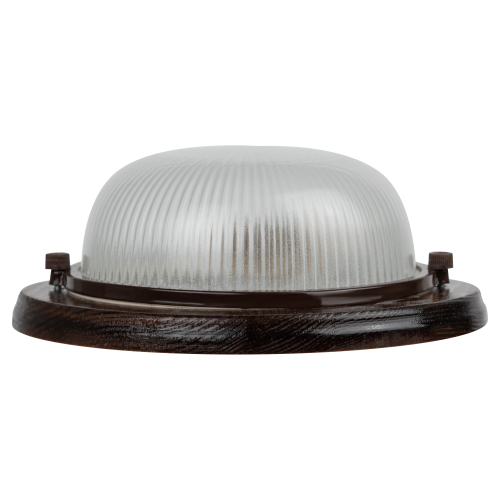 Светильник серии "Кантри", в дизайне которой применено натуральное дерево. Некоторые модели дополнительно защищены деревянной решеткой. Диапазон рабочих температур: от +1°С до +130°С. Материал рассеивателя: селикатное стекло. Материал корпуса: сталь, дерево оттенка орех. Источник света: лампа с цоколем Е27. Габариты: 220х220х84 мм. Степень защиты от окружающей среды: IP54. Данные светильники предназначены для освещения административно-бытовых, производственных помещений и мест общественного пользования.