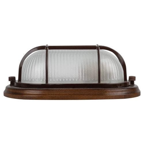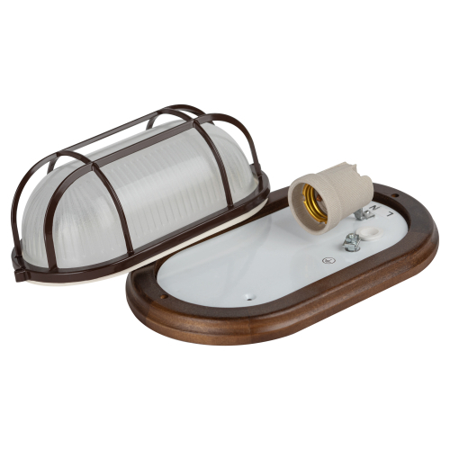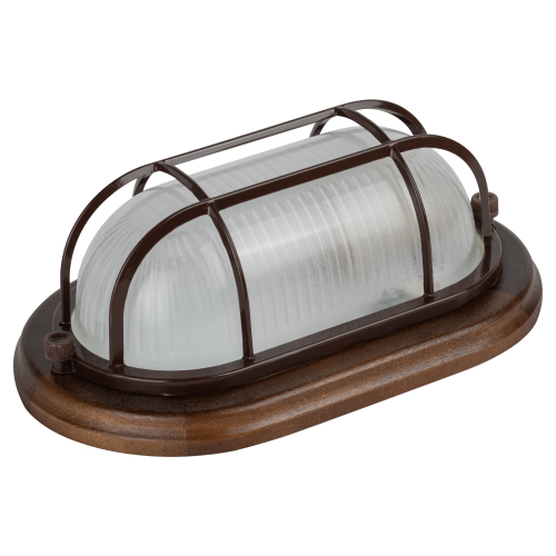 Светильник серии "Кантри", в дизайне которой применено натуральное дерево. Некоторые модели дополнительно защищены деревянной решеткой. Диапазон рабочих температур: от +1°С до +130°С. Материал рассеивателя: селикатное стекло. Материал корпуса: сталь, дерево (орех). Источник света: лампа с цоколем Е27. Габариты: 232х140х88 мм. Степень защиты от окружающей среды: IP54. Данные светильники идеальны для освещения административно-бытовых, производственных помещений и мест общественного пользования.