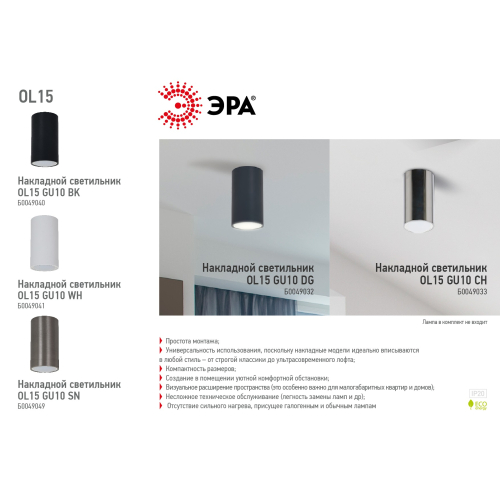 Накладной светильник OL15 GU10 BK визуально расширяет пространство, имеет несложное техническое обслуживание (легкость замены ламп и др.), компактный размер. Идеально вписывается в любой стиль - от строгой классики до ультрасовременного лофта. Цоколь для источника света GU10, напряжение питания 220В ~50/60Гц, материал алюминий, цвет светильника черный, размер 55*100, максимальная мощность лампы 50 Вт, степень защиты IP20