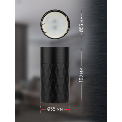 Накладной светильник OL31 BK применяется для акцентного освещения и светового зонирования помещений. Может так же использоваться как основной источник света. Универсальный дизайн и небольшой размер светильника позволяют устанавливать его в помещениях любых типов и предназначений. Создает уютную и комфортную обстановку. Цоколь для источника света GU10, напряжение питания ~230В 50/60Гц, материал алюминий, железо, цвет светильника черный, размер D55*H100мм, максимальная мощность лампы 12Вт, степень защиты IP20