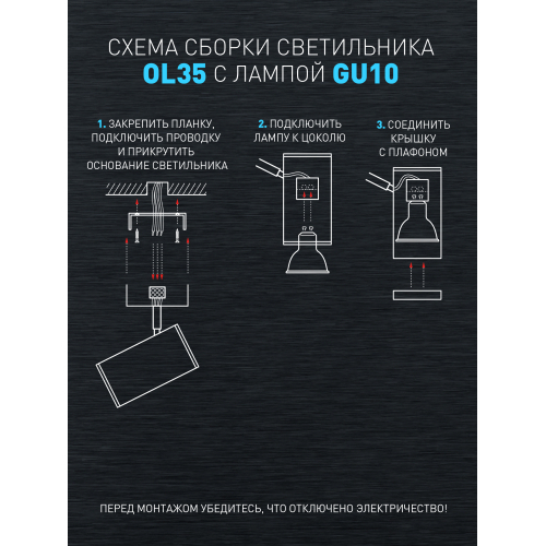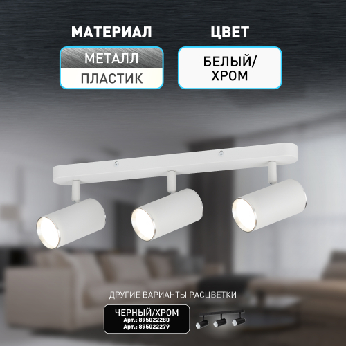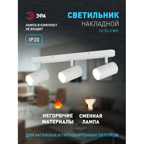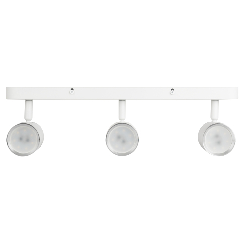 Светильник OL35-3 WH применяется для акцентного освещения и светового зонирования помещений. Может так же использоваться как основной источник света. Универсальный дизайн и небольшой размер светильника позволяют устанавливать его в помещениях любых типов и предназначений. Цоколь для источника света GU10, напряжение питания ~230В 50/60Гц, материал алюминий, железо, цвет светильника белый, хром, размер D55*100*3мм, максимальная мощность лампы 3*12Вт, степень защиты IP20