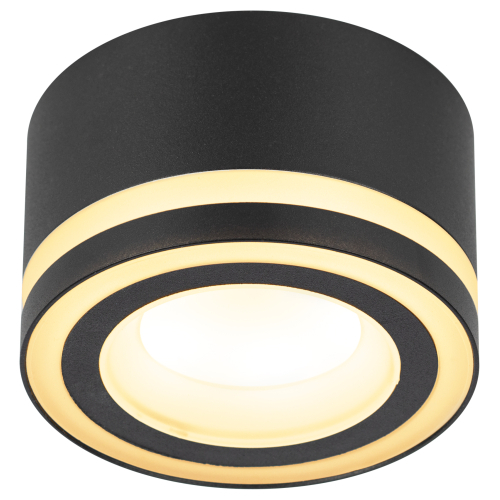 Накладной светильник OL51 BK делает помещение зрительно более стильным и интересным. Используя по периметру несколько однотипных осветительных устройств, можно сформировать интеренсые световые геометрические рисунки. Цоколь для источника света GX53, напряжение питания ~230В 50/60Гц, материал металл, пластик, цвет светильника черный, размер D83x50мм, максимальная мощность лампы 15Вт, степень защиты IP20