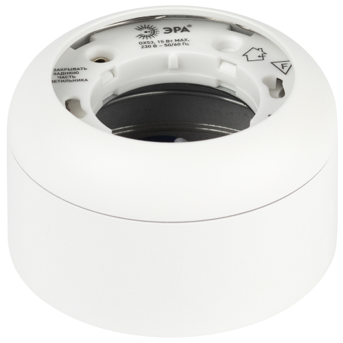 Накладной светильник OL56 WH делает помещение зрительно более стильным и интересным. Используя по периметру несколько однотипных осветительных устройств, можно сформировать интересные световые геометрические рисунки. Цоколь для источника света GX53, напряжение питания ~230В 50/60Гц, материал металл, цвет светильника белый, размер D83х50мм, максимальная мощность лампы 15Вт, степень защиты IP20