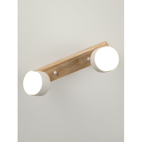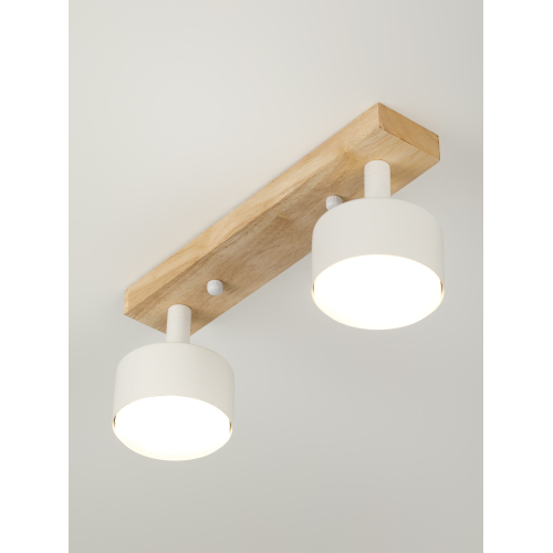 Серия белых настенно-потолочных светильников с деревянным основанием и поворотными плафонами — сочетание натуральных материалов и функциональности. Модели на 1, 2, 3 и 4 лампы с цоколем GX53, мощностью до 15 Вт (лампы в комплект не входят). Поворотные плафоны позволяют направлять свет по вашему желанию.