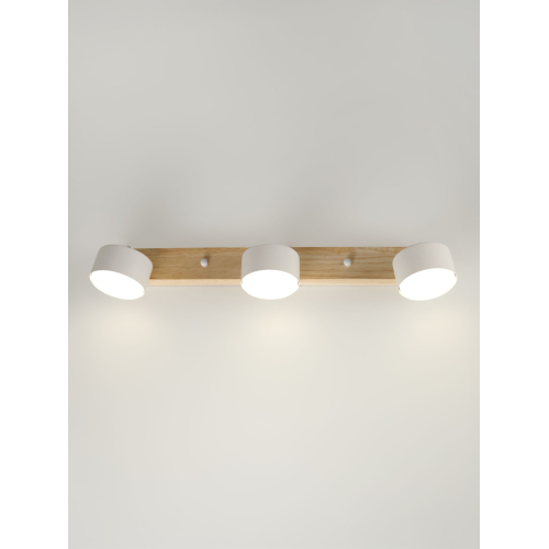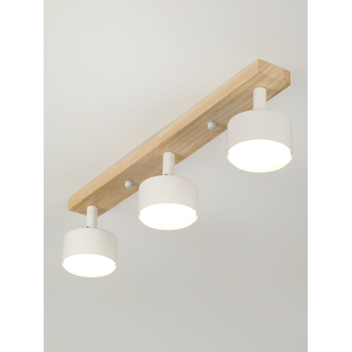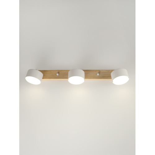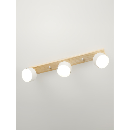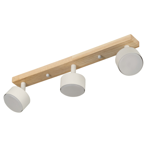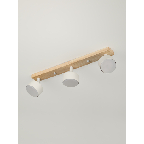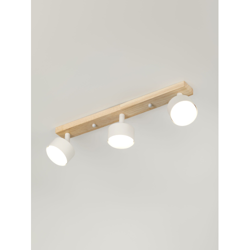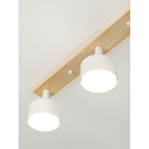 Серия белых настенно-потолочных светильников с деревянным основанием и поворотными плафонами — сочетание натуральных материалов и функциональности. Модели на 1, 2, 3 и 4 лампы с цоколем GX53, мощностью до 15 Вт (лампы в комплект не входят). Поворотные плафоны позволяют направлять свет по вашему желанию.