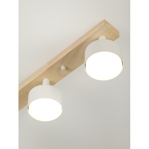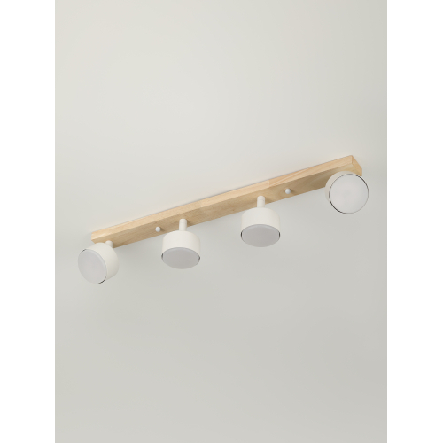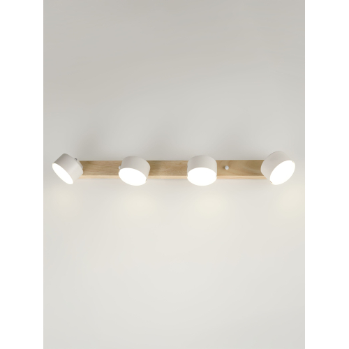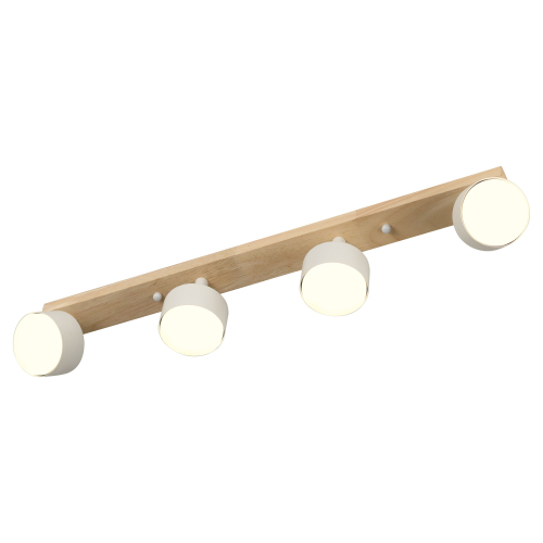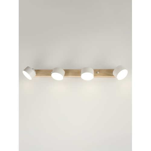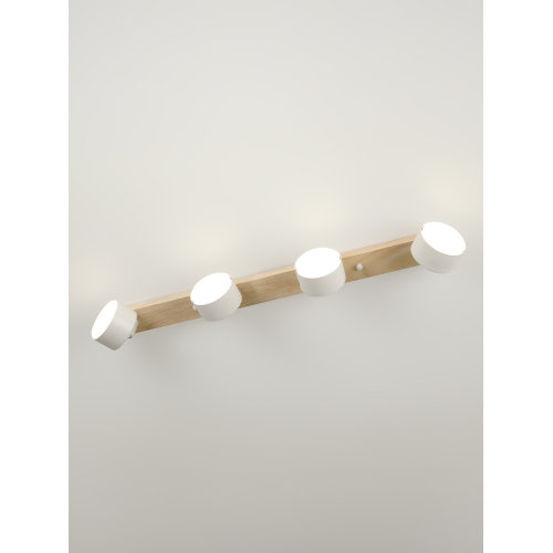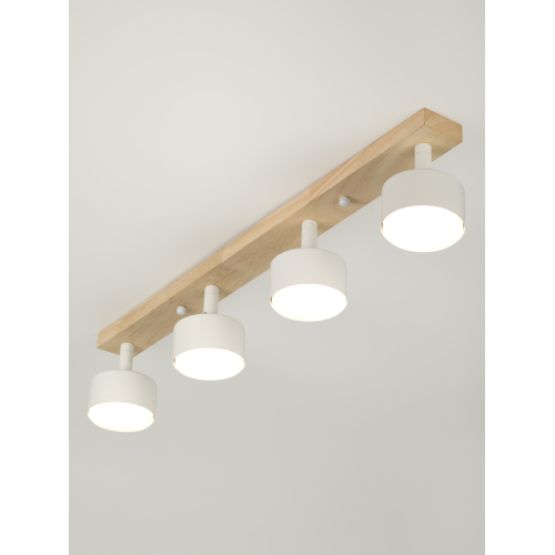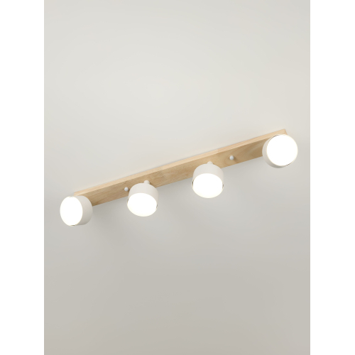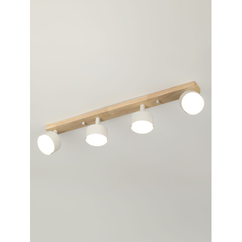 Серия белых настенно-потолочных светильников с деревянным основанием и поворотными плафонами — сочетание натуральных материалов и функциональности. Модели на 1, 2, 3 и 4 лампы с цоколем GX53, мощностью до 15 Вт (лампы в комплект не входят). Поворотные плафоны позволяют направлять свет по вашему желанию.