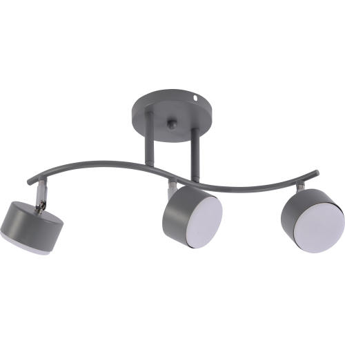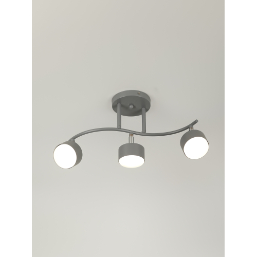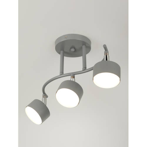 Серия настенно-потолочных светильников серого цвета с поворотными плафонами — практичное и современное решение для любого интерьера. Модели на 2, 3 и 4 лампы с цоколем GX53, мощностью до 15 Вт (лампы в комплект не входят). Регулируемые плафоны обеспечивают удобное направление света.