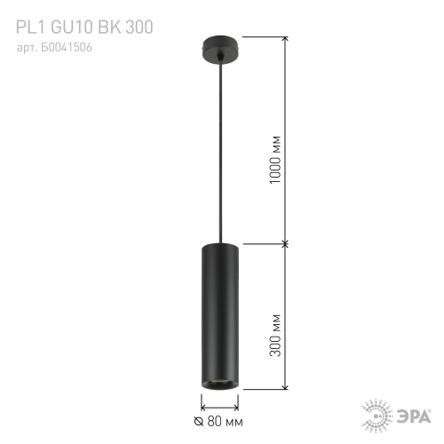 Светильник подвесной PL1 GU10 BK 300 является универсальным источником света, легко монтируется и демонтируется в потолок. Создает неповторимый дизайн и уют в помещении. Подходит для спален, гостинной, столовой и других комнат. Цоколь для источника света GU10, напряжение питания 220В ~50/60Гц, материал алюминий, цвет светильника черный, размер 80*300мм, длина провода 1000мм, максимальная мощность лампы 50 Вт, степень защиты IP20