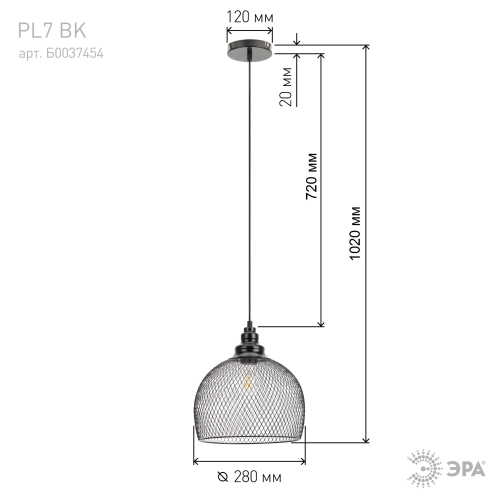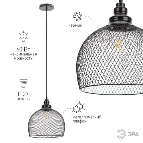 Подвесной светильник PL7 BK компании Эра имеет невероятно выразительный дизайн, благодаря чему органично дополнит интерьер в стиле лофт, модерн или хай-тек. Он выполнен в виде полусферы с пересекающимися прутьями. Длинный провод позволяет размещать лампу на высоких потолках; в помещениях со стандартными потолками подобная лампа будет создавать пространство с приглушенным акцентным светом. Модель имеет цоколь Е27, подходит для лампы накаливания 60Вт внутри помещений. Подвесной черный светильник впишется в интерьер кухни, столовой, коридоров, привнесет в пространство кафе атмосферу таинственности. Данная модель сочетается с филаментной лампой.