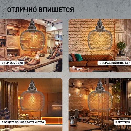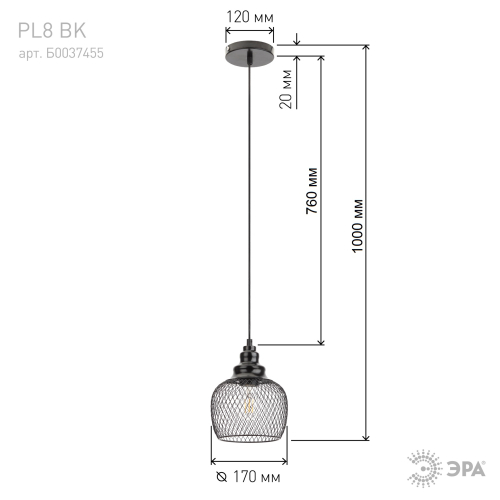 Подвесной светильник PL8 BK компании Эра отличается выразительным дизайном, благодаря чему органично дополнит интерьер в стиле хай-тек, лофт или модерн. Он выполнен в виде полусферы с пересекающимися прутьями. Длинный провод позволяет размещать лампу на высоких потолках; в помещениях со стандартными потолками подобная лампа будет создавать пространство с приглушенным акцентным светом. Модель имеет цоколь Е27, с максимальным показателем 60W, подходит для использования внутри помещений. Черный подвесной светильник впишется в интерьер кухни, столовой, коридоров, привнесет в пространство кафе атмосферу таинственности. Данная модель лучше всего сочетается с филаментной лампой.