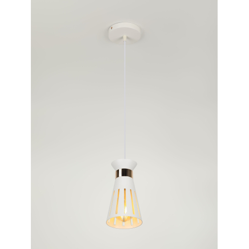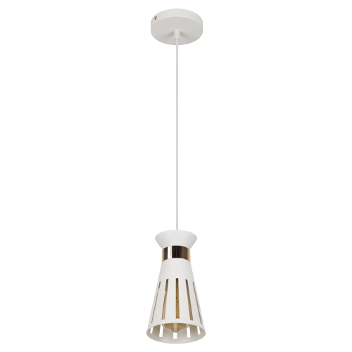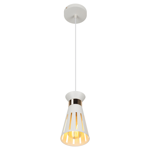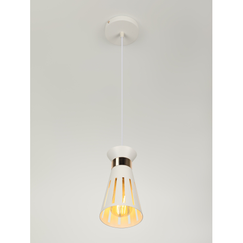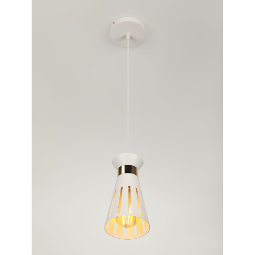 Серия металлических подвесов в цвете белый + золото с перфорированными плафонами — стильный выбор для интерьеров в стиле лофт и современного минимализма. Доступны модели на 1 и 3 лампы с цоколем E27 (макс. мощность — 60 Вт, лампы не входят в комплект). Регулируемая высота подвеса позволяет легко адаптировать светильники под особенности помещения.