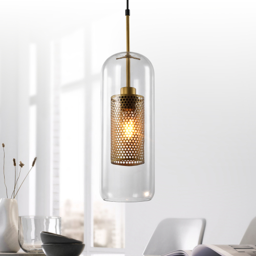 Rivoli Britney (арт. 4109-201) – дизайнерский потолочный светильник на тросе с регулировкой высоты при монтаже на потолок. Оригинальный плафон подвесного светильника представляет собой двухчастную конструкцию. Внутренний плафон подвеса – золотистый конус с декоративным перфорированием в виде пчелиных сот. Внешний плафон светильника подвесного Britney – прозрачная стеклянная колба. Дизайн подвеса потолочного Britney от итальянского бренда Rivoli сложный, многослойный и оригинальный. Такие светильники потолочные подвесные никого не оставят равнодушным и сделают запоминающимся любой интерьер. Источник света для данного дизайнерского подвеса – лампа Е27 40 Вт.