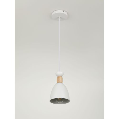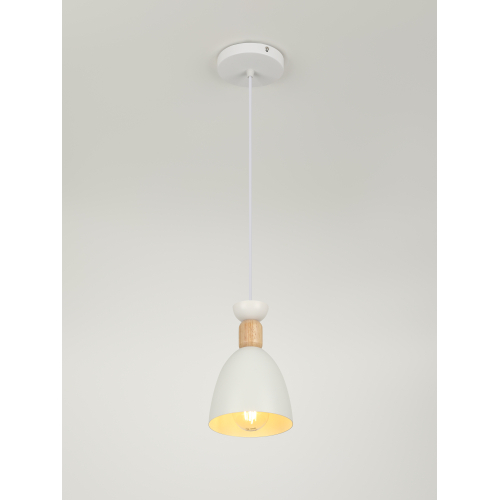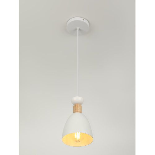 Металлические подвесы с деревянными элементами на 1 лампу — идеальный выбор для интерьеров в стиле скандинавский минимализм и современный лофт. Доступны в белом и сером цветах. Подходит лампа с цоколем E27 и мощностью до 60 Вт (лампа в комплект не входит). Высота светильника регулируется для удобного размещения.