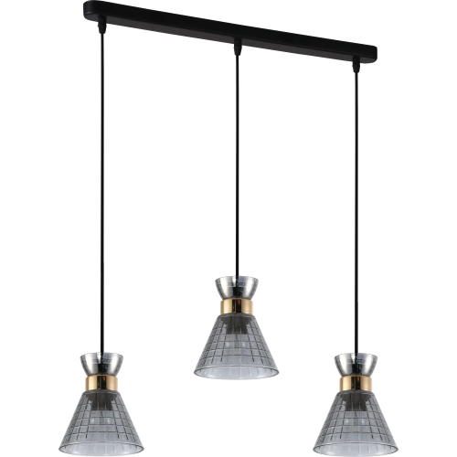 Серия подвесных светильников в цвете чёрный + золото с элегантными дымчатыми плафонами — стильное решение для интерьеров в современном и классическом стилях. Модели на 1, 2 и 3 лампы с цоколем E27 (макс. мощность — 60 Вт, лампы не входят в комплект). Высота подвеса регулируется, что позволяет адаптировать светильник под любое пространство.