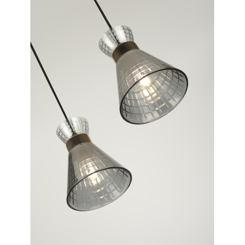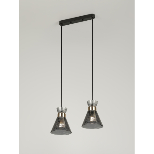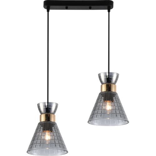 Серия подвесных светильников в цвете чёрный + золото с элегантными дымчатыми плафонами — стильное решение для интерьеров в современном и классическом стилях. Модели на 1, 2 и 3 лампы с цоколем E27 (макс. мощность — 60 Вт, лампы не входят в комплект). Высота подвеса регулируется, что позволяет адаптировать светильник под любое пространство.