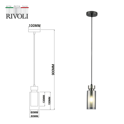 Rivoli Klara (арт. 3099-201) подвесной светильник под лампу Е14 15 Вт, выполненный в стиле модерн. Арматура подвесных потолочных светильников Klara от итальянского бренда Rivoli окрашена в интересное сочетание двух модных оттенков черный жемчуг и никель сатин.
