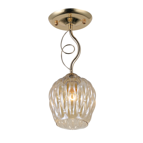 Светильник Daiane подходит на любой тип потолка, в том числе на натяжной потолок. Его элегантная арматура гальванизирована в золотой цвет, а плафоны имеют теплую перламутрово-золотистую тонировку. Корпус декорирован запоминающейся золотой веточкой с листочком. Стеклянный плафон в виде бутона украшен фигурным ободком с объёмным узорчатым рисунком. Дизайн светильника потолочного Rivoli Daiane просто великолепен! Этот светильник-люстра привнесет в ваш дом уют и красоту. Идеальным решением такой потолочный светильник станет для традиционных интерьеров, пространств в стиле модерн. Можно купить для комнат в восточном стиле. Источник света - Е27 40 Вт.