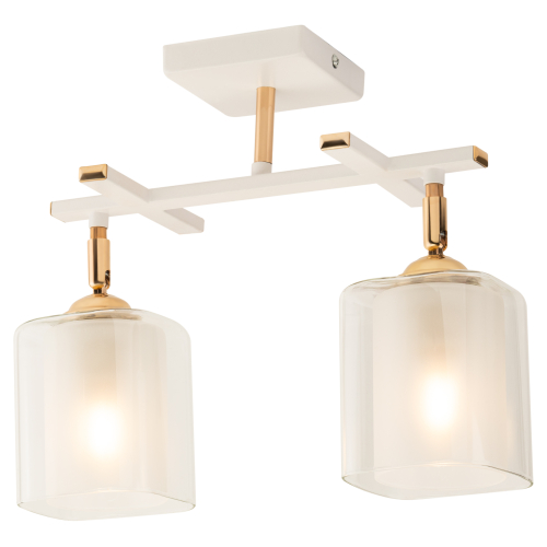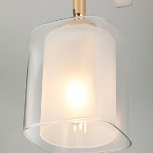Геометричная арматура этой красивой светлой люстры окрашена в белый цвет, на фоне которого эффектно смотрятся декоративные элементы золотого оттенка. Еще одна дизайнерская находка, отличающая люстры на потолок Rivoli Helga двойная конструкция плафонов: внешний прозрачный и внутренний матовый.