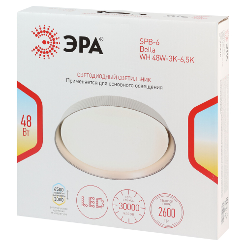 Светодиодный светильник ЭРА SPB-6 Bella 48W-3K-6,5K WH – современное решение для общего освещения жилых и коммерческих помещений.
