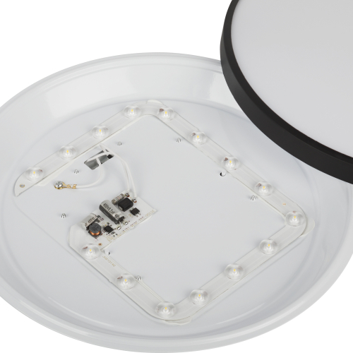 Мощность светильника 24 Вт, а световой поток – 1650 лм. Матовый рассеиватель обеспечивает равномерное распределение света без бликов и дискомфорта для глаз.