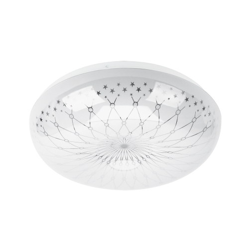 Изумительный дизайн плафона поможет создать атмосферу уюта и волшебства в Вашем доме. Узор из сплетающихся в сетку линий прекрасно сочетается с круглым плоским корпусом. Крохотные звезды, разбросанные по окружности рассеивателя, придают светильнику динамики. Такая LED люстра идеально подойдет для оформления детской, гостиной или спальни.
