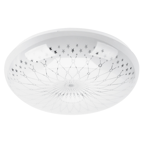 Восхитительный дизайн плафона создаст приятную обстановку в Вашем доме. Узор из переплетающихся линий прекрасно сочетается с круглым плоским корпусом. Крохотные звезды, разбросанные по окружности рассеивателя, придают светильнику динамики. Такая LED люстра идеальна для оформления света детской, гостиной или спальне.