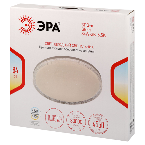 Светодиодный светильник ЭРА SPB-6 Gloss 84W-3K-6,5K – современное решение для общего освещения жилых и коммерческих помещений.