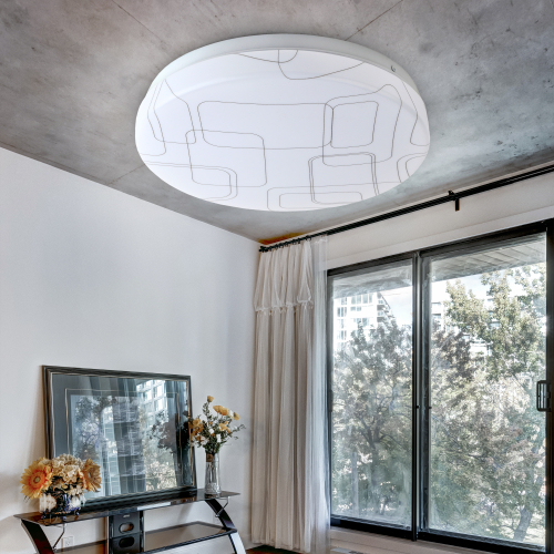 Плафон потолочной люстры выполнен из матового пластика, защищающего от воздействия прямого света. Рассеиватель имеет неповторимый дизайн: декоративный узор серебряного цвета изящно дополняет круглый плоский корпус. Это позволяет использовать SPB-6 "Slim 2" 36-6K в качестве освещения для кухни, прихожей, гостиной.
