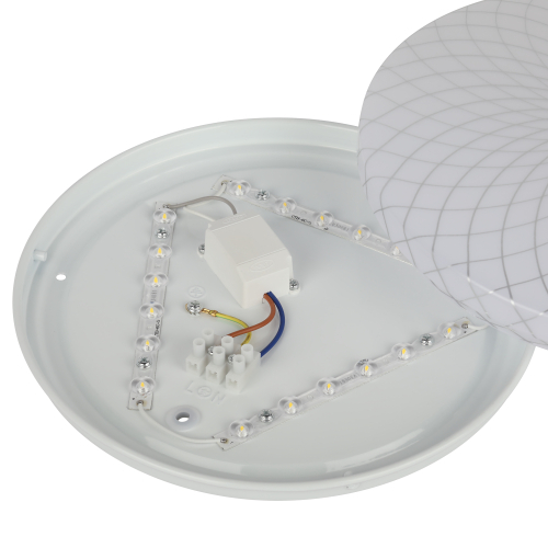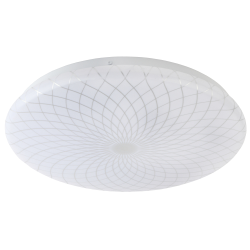 Плафон потолочной люстры выполнен из матового пластика, защищающего от воздействия прямого света. Рассеиватель декорирован блестящим узором, напоминающим солнце. Неповторимый дизайн идеально гармонирует с круглым плоским корпусом светильника и создает атмосферу уюта. Это позволяет использовать SPB-6 "Slim 3" 24-4K для освещения прихожей, гостиной или спальни.