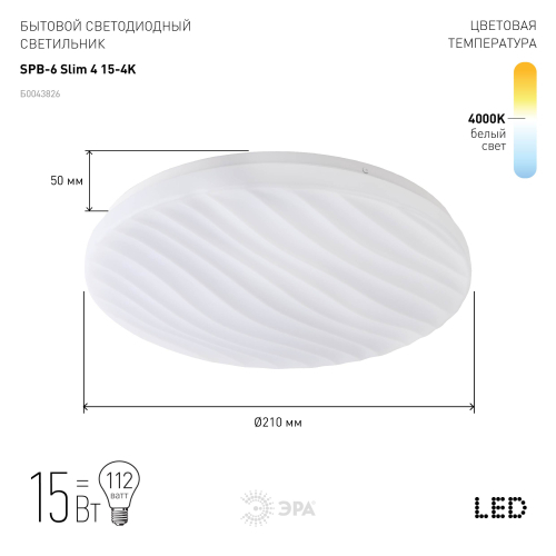 Стильный потолочный светильник SPB-6 "Slim 4" от компании ЭРА добавит свежести и практичности Вашему дому! Светодиодная люстра имеет стандартные габариты 210х50 мм, что позволит ей вписаться в любой интерьер.