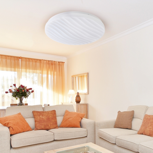 Потолочную люстру отличает неповторимый дизайн плафона. Рельефная декорация в сочетании с круглым плоским корпусом создает ощущение движения воды. Электросветильник SPB-6 "Slim 4" придаст свежести интерьеру спальни, гостиной или коридора.