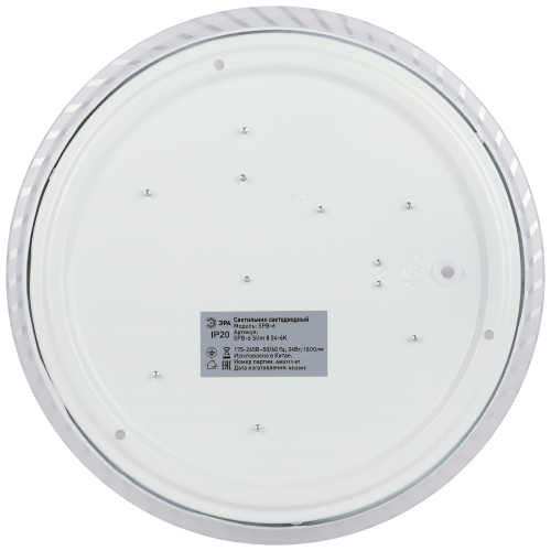 Рассеиватель имеет эксклюзивный дизайн: геометричный узор серебристого оттенка изящно гармонирует с круглым плоским корпусом. Это позволяет использовать SPB-6 "Slim 8" в качестве освещения для кухни, спальни или гостиной.