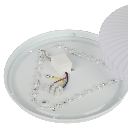 Белое свечение в 6000 К не раздражает глаза. Симметричное распределение света достигается за счет плафона из матового пластика.
